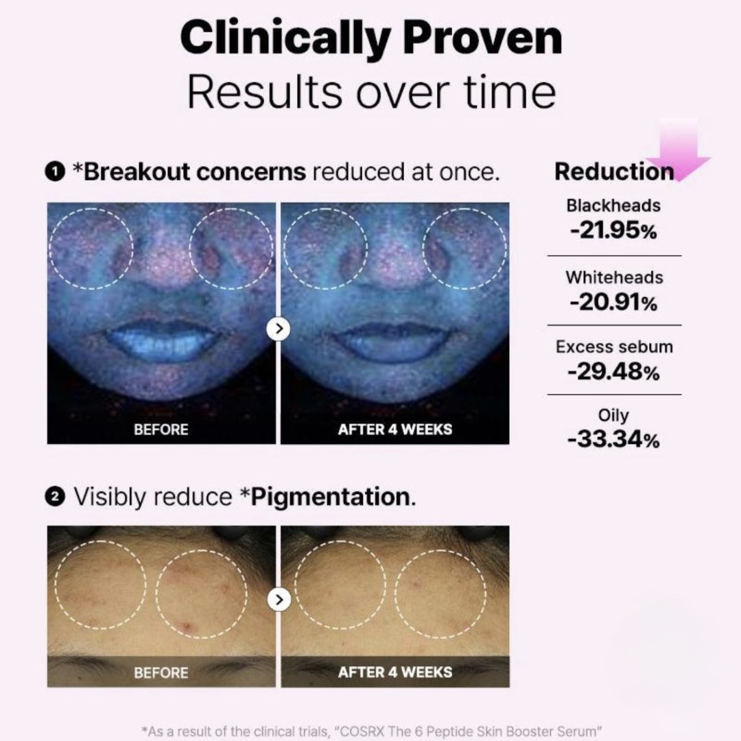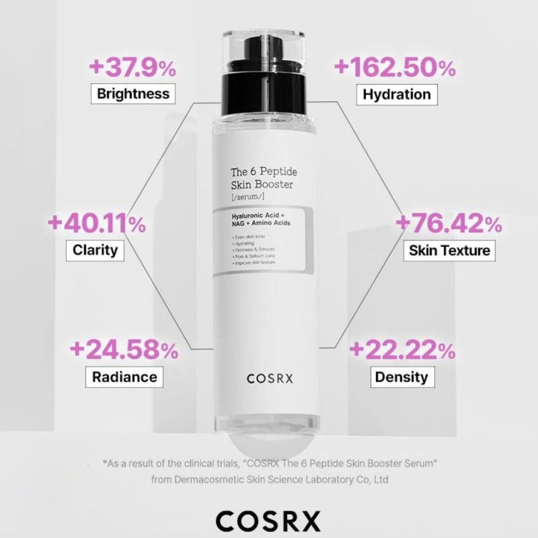 بصورت بالینی اثبات شده است که استفاده از سرم 6پپتاید کوزارکس تغییرات محسوسی در جهت بهبود پوست ایجاد میکند.
